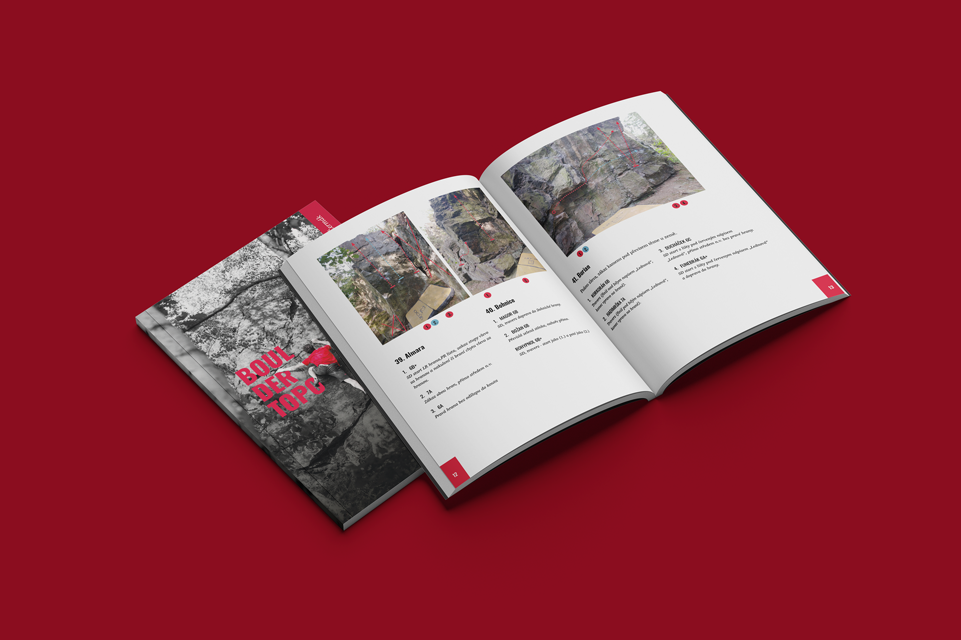 Grafická úprava průvodce pro boulderisty, lezce i horolezce po malé skalní oblasti Kozí hřbety.